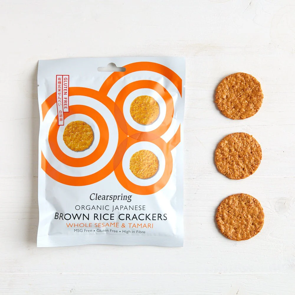 Organic Japanese Brown Rice Crackers - Whole Sesame & Tamari